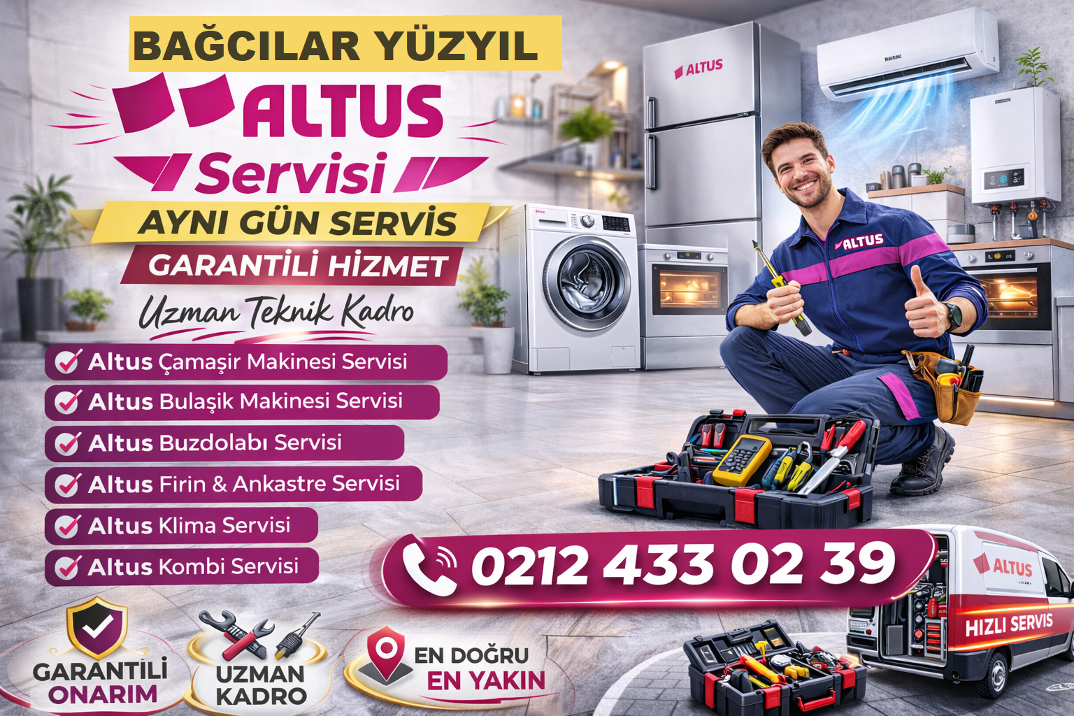 DevamıBakırköy Altus Servisi, İstanbul Bakırköy ve tüm mahallelerinde aynı gün servis, en yakın teknik ekip, garantili onarım ve orijinal yedek parça avantajlarıyla hızlı çözüm sunar. 📞 0212 433 02 39 – Hemen Ara | Aynı Gün Servis Çamaşır makinesi, bulaşık makinesi, kurutma makinesi, buzdolabı, klima, kombi ve ankastre ürünlerinizde yaşadığınız tüm arızalar için en hızlı,…