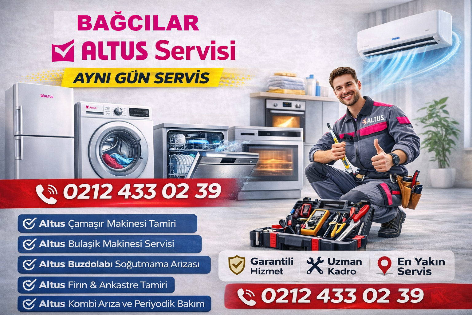 Altus Bağcılar Çamaşır Makinesi Servisi 0212 433 02 39 Altus Bağcılar Çamaşır Makinesi Servisi, Bağcılar ve çevresinde Altus marka çamaşır makineleriniz için hızlı, güvenilir ve uzman teknik servis hizmeti sunmaktadır. Müşterilerimize aynı gün servis, uzman kadro, garantili onarım, orijinal yedek parça kullanımı ve ekonomik işçilik ile kaliteli hizmet sağlanmaktadır. Altus çamaşır makineleri, ev ve iş…