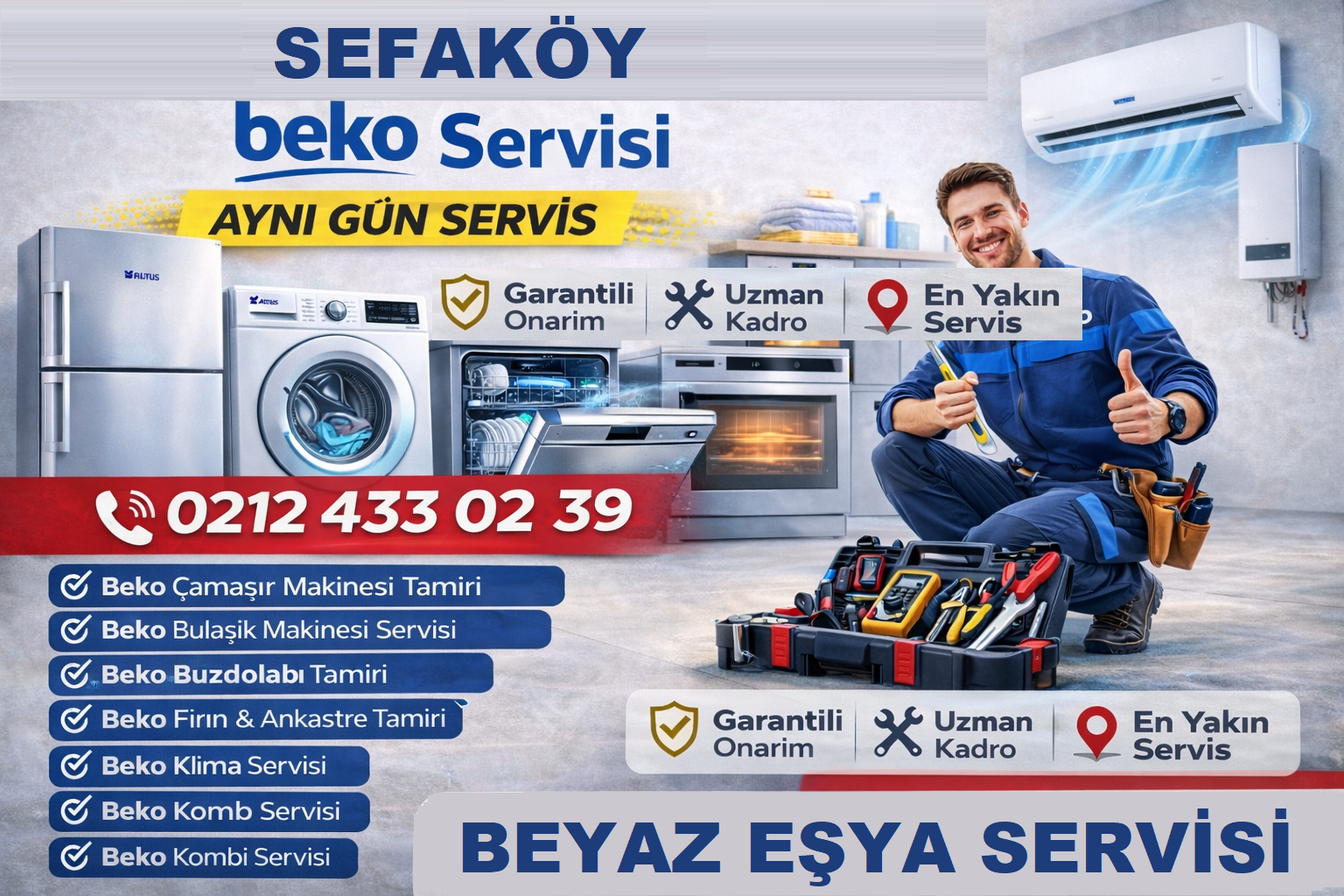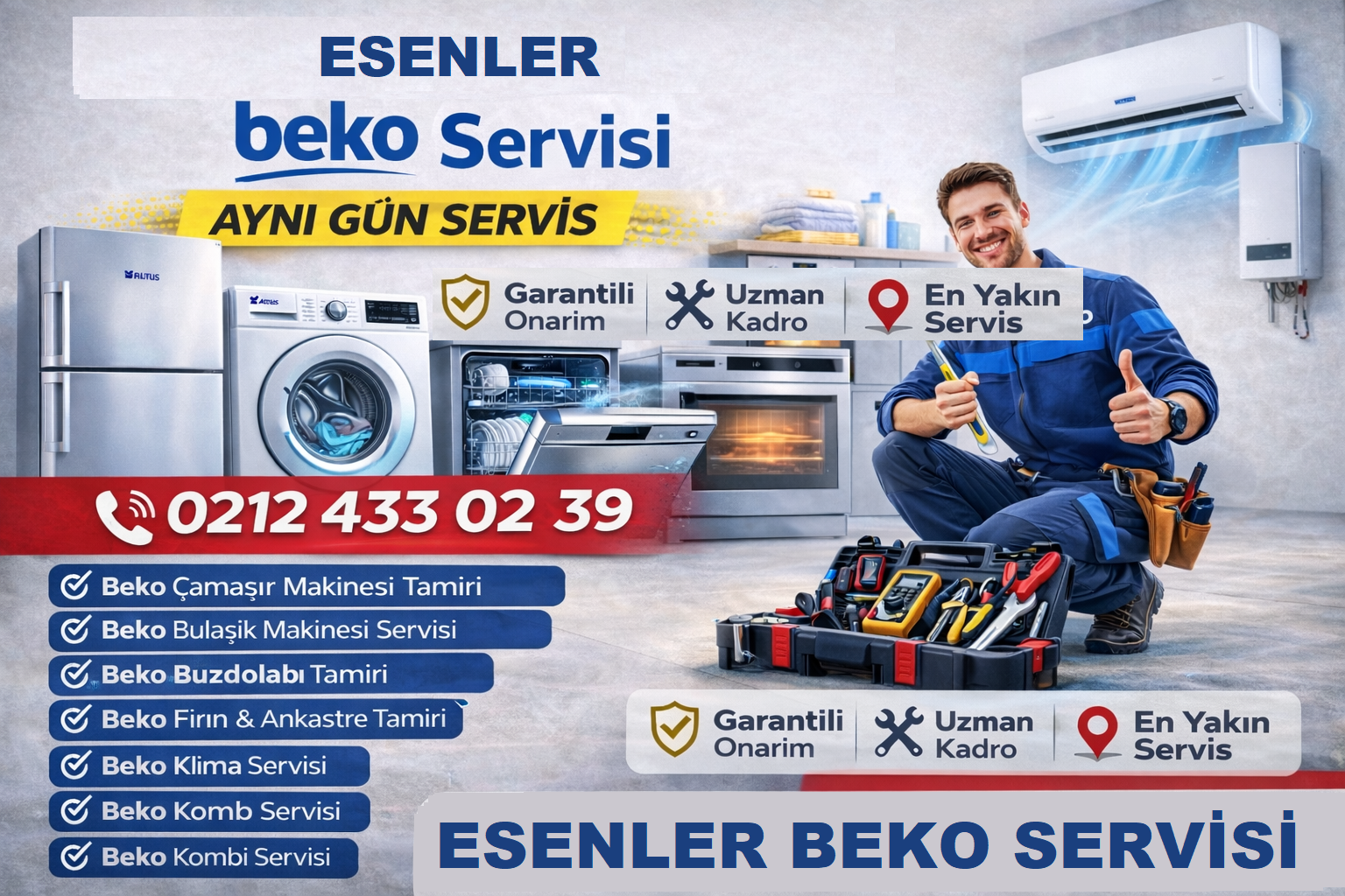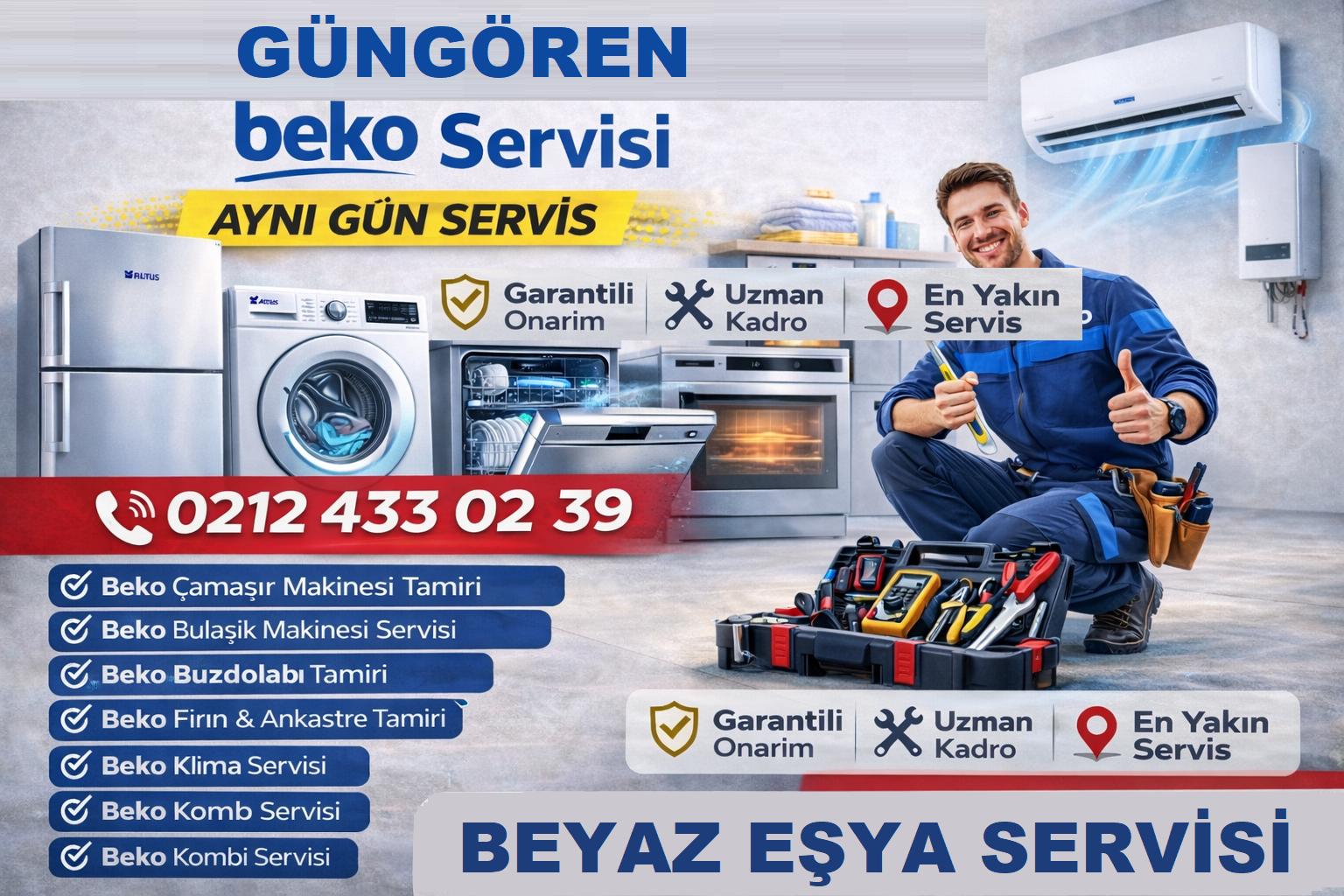 Devamıİkitelli Beko Servisi 0212 433 02 39 İkitelli Beko Servisi, İkitelli ve çevresinde Beko marka beyaz eşya ve klima cihazlarınız için güvenilir, hızlı ve profesyonel servis hizmeti sunmaktadır. Müşterilerimize aynı gün servis, uzman kadro, garantili onarım, orijinal yedek parça kullanımı ve ekonomik işçilik ile kaliteli teknik destek sağlıyoruz. Beko cihazlar; çamaşır makineleri, bulaşık makineleri, buzdolapları,…
